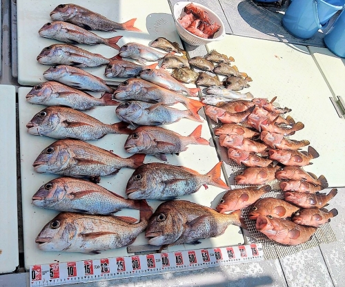 広島県呉市仁方発遊漁船七海です。 一つテンヤしてきました。 今日は玉さん達と出てきました。 スタートは今一つ。 ポツポツくらい。 潮が変わって、ちょっと流れ出してからは結構良い感じ。 タイ、アコウ混じりから、タイラッシュ。 終盤の潮の緩みにはアコウラッシュも。 終わってみたらかなり良い感じでした。 遊漁船七海では二人体制でやっていますのでしっかりサポートさせていただきます。 初めて遊漁船に乗られる方でもお気軽にご連絡ください。 釣った魚は下処理をしてお持ち帰りいただけます。 餌のエビはシーズン中はしっかり用意させていただきます 釣果情報 2023/07/30 遊漁船 七海 タグ:釣果情報 , タイ , アコウ , カサゴ , 一つテンヤ , セトダイ , グチ , カワハギ