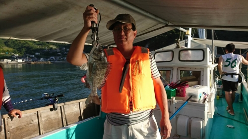 広島県呉市仁方発遊漁船七海です。 今日はタイ狙いでやってきました。 朝一からやってもらいました。 50センチアップのナイスな真鯛。 潮があまり流れずにいやな感じを吹き飛ばしてくれました。 続けていいサイズのスズキに、珍しいゲストのクロダイ。 その後がなかなか厳しかった、魚もお盆休みでしょうか、 なかなか魚探に映らないし、写ってもすぐに消えるあたりも小さかった。 そんな中ガンバって拾ってもらって何とかタイとアジを追加してもらいました。 本日も厳しい中ありがとうございました。 2018/08/13 遊漁船 七海 タグ:釣果情報 , タイ , カサゴ , スズキ , アジ , クロダイ