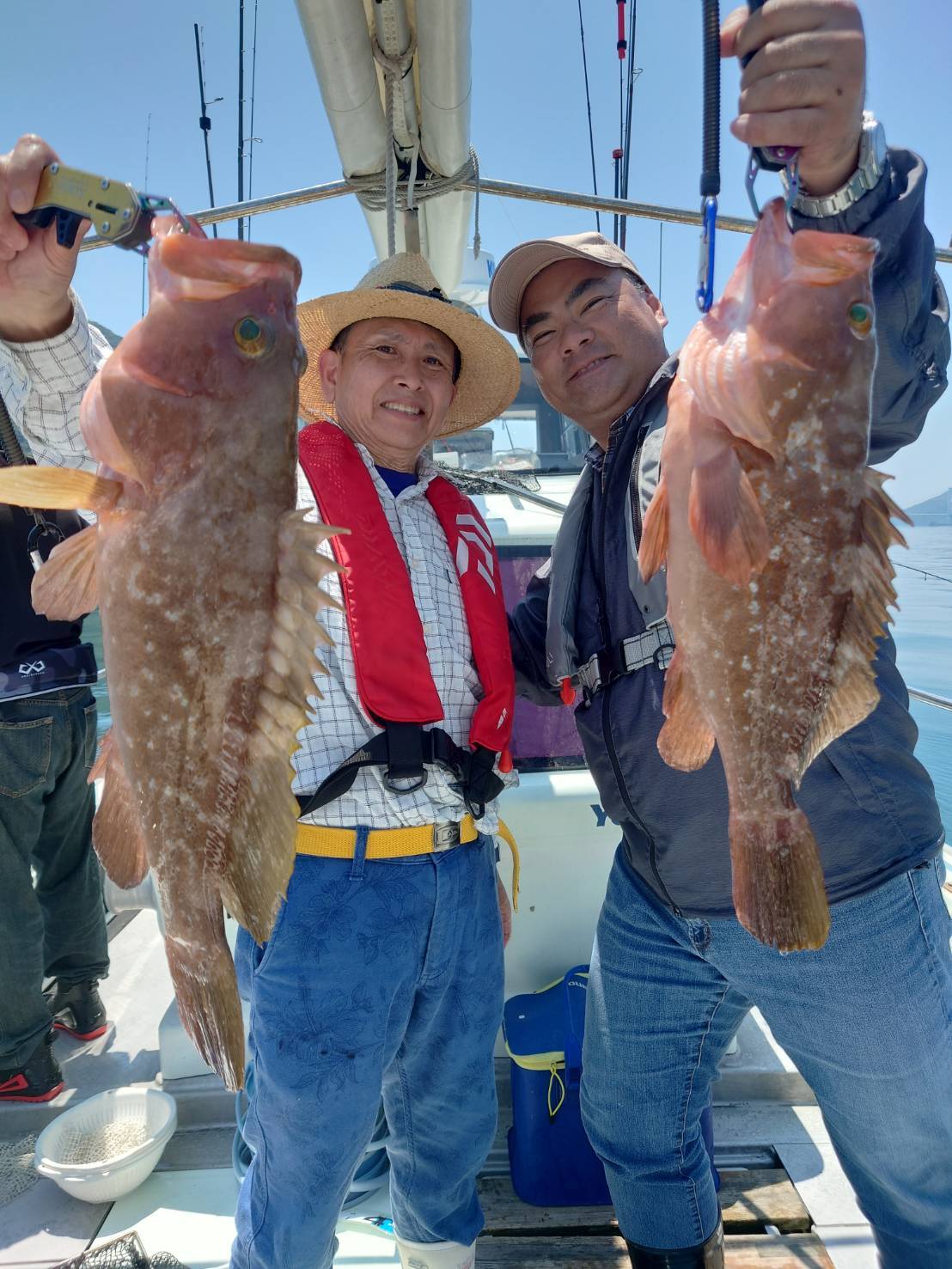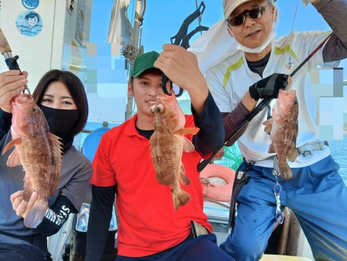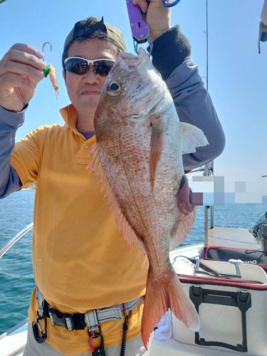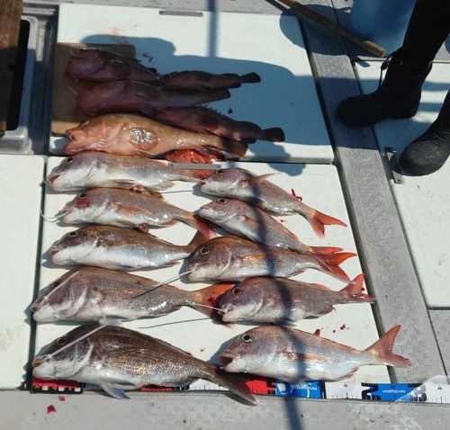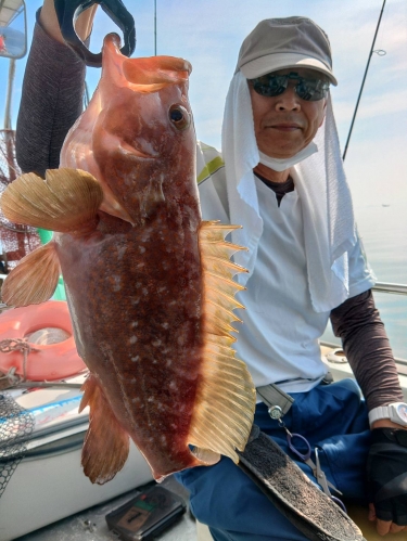 広島県呉市仁方発遊漁船七海です。 一つテンヤ、タイラバしてきました。 今日は久しぶりのkymさんとmkグループで出てきました。 朝の一流し目は当たりあるけど掛からない。 ウロウロしてたら釣れるところ発見。 それからは、ずーっと誰か釣ってる状態。 中盤戦はアコウラッシュありで大型アコウが連発でした。 TOPはタイ10枚アコウ6匹でした。 遊漁船七海では二人体制でやっていますのでしっかりサポートさせていただきます。 初めて遊漁船に乗られる方でもお気軽にご連絡ください。 釣った魚は下処理をしてお持ち帰りいただけます。 餌のエビはシーズン中はしっかり用意させていただきます 釣果情報 2024/06/13 遊漁船 七海 タグ:釣果情報 , タイ , アコウ , カサゴ , 一つテンヤ , セトダイ , グチ , タイラバ , コウイカ
