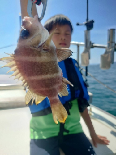 スタートで二人が立て続けにデッカイアコウを釣ってくれて