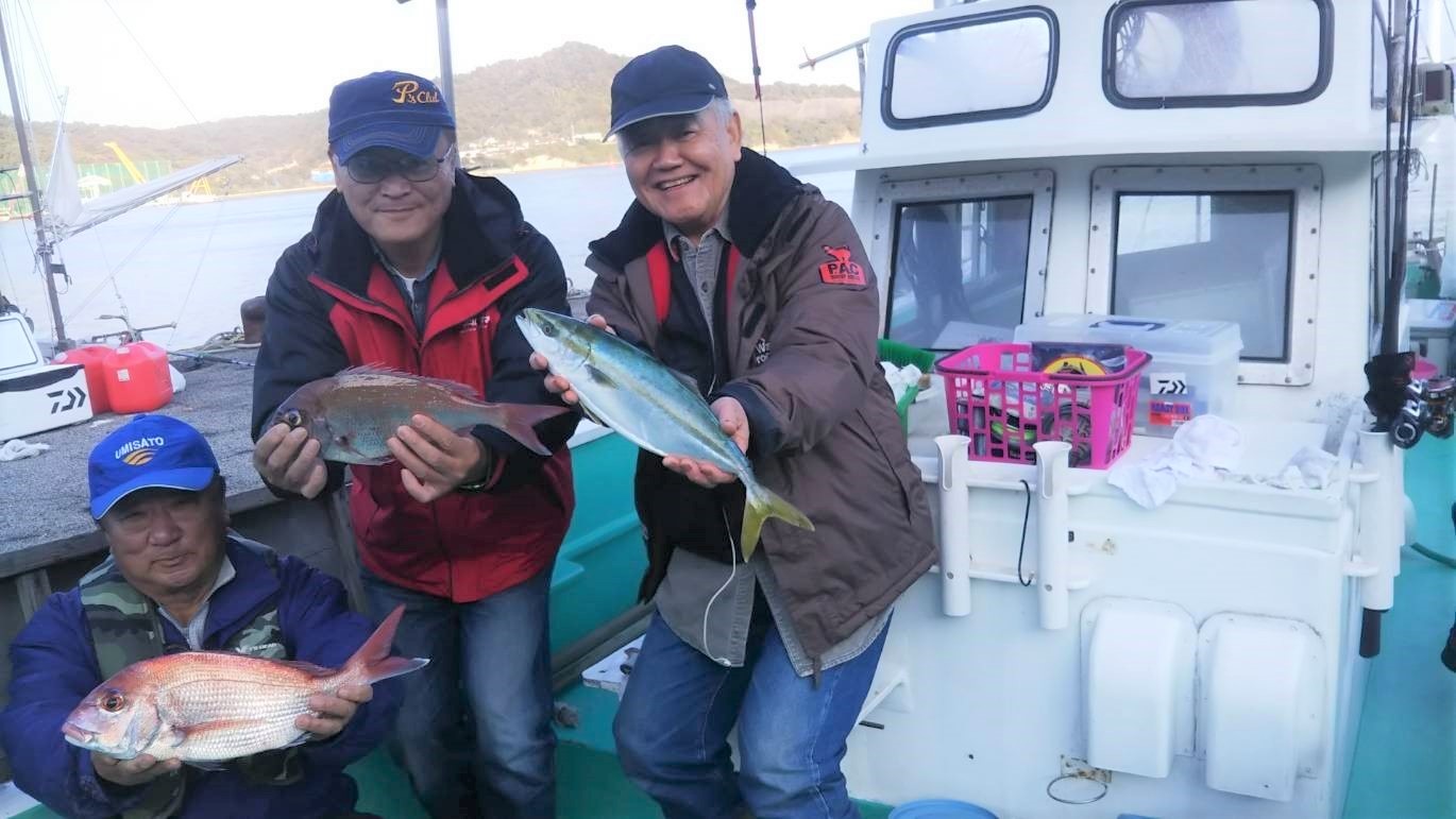 広島県呉市仁方発遊漁船七海です。 今日はタイ狙いで行ってきました。 今日は少し遠出してタイを狙ってきました。 朝一は少し反応が悪かったですが、少しするといい感じでした。 一番は毎週いらっしゃるかっちゃんさん。少し小さいですが しっかりタイをあげてくれました。 久しぶりに乗船してくれた五さん、こちらもナイスなタイをあげてくれます。 とくちゃんさんはいつになくよく釣れてニコニコ顔でした。 五さんは潮どまり前にヤズを追加、しかもダブルで。 潮が変わってからもいいサイズのタイが釣れて終わってみると なかなかの釣果でした。 釣果情報 2018/11/10 遊漁船 七海 タグ:釣果情報 , タイ , ヤズ , カサゴ , ウマヅラハギ