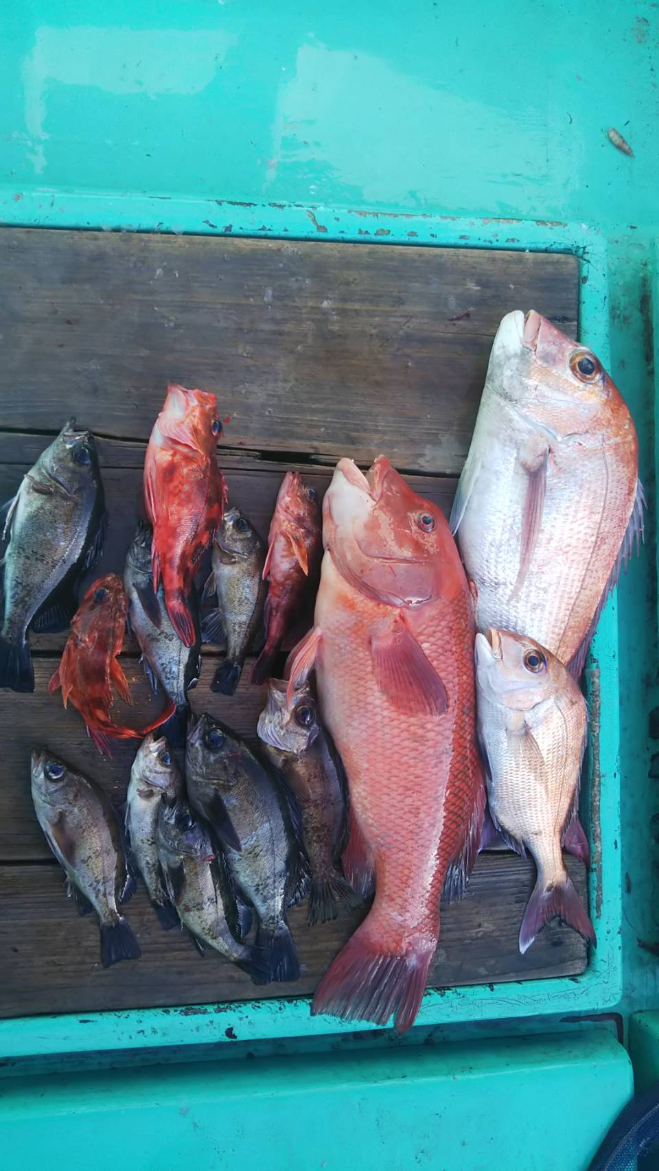 広島県呉市仁方発遊漁船七海です。 今日もメバル狙いしてきました。 今日は久しぶりにかっちゃんさん、グループと出船。 昨日に引き続き朝からメバル結構食いが渋い。 かわりに、タイが当たって来てくれます。 後半戦はウロウロしながらでしたが 最後に良いサイズのタイを獲ってもらいました。 遊漁船七海では二人体制でやっていますのでしっかりサポートさせていただきます。 初めて遊漁船に乗られる方でもお気軽にご連絡ください。 釣果情報 2020/02/24 遊漁船 七海 タグ:釣果情報 , タイ , メバル , カサゴ , 一つテンヤ