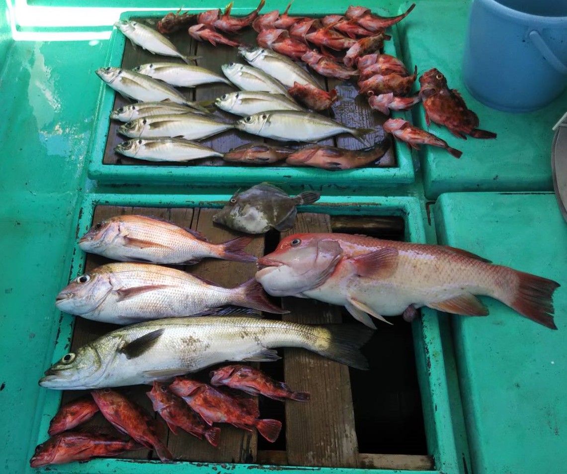 スタートは良いサイズのスズキ、その後アジとカサゴが