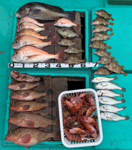 朝一はコショウダイ、前半戦はタイ、アコウのほかコチやセトダイといった