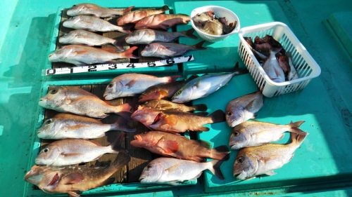 潮が変わって流れ出してからは良いサイズのタイが釣れてくれました。