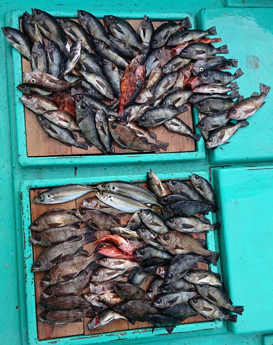 広島県呉市仁方発遊漁船七海です。 今日もメバルしてきました。 今日は片さん、トクちゃん、白さん達と出てきました。 昨日に比べていい天気、風もなく釣りやすい。 朝一は昨日と同じところ、今日もメバルとアジでスタート。 そこからポツポツ拾って潮が変わる前に移動。 ここから引き潮がキツクなるまで良い感じに釣れましたよ。 遊漁船七海では二人体制でやっていますのでしっかりサポートさせていただきます 初めて遊漁船に乗られる方でもお気軽にご連絡ください。 釣った魚は下処理をしてお持ち帰りいただけます。 コロナ対策のためマスク着用ご協力お願いします。 釣果情報 2021/03/14 遊漁船 七海 タグ:メバル , カサゴ , アジ