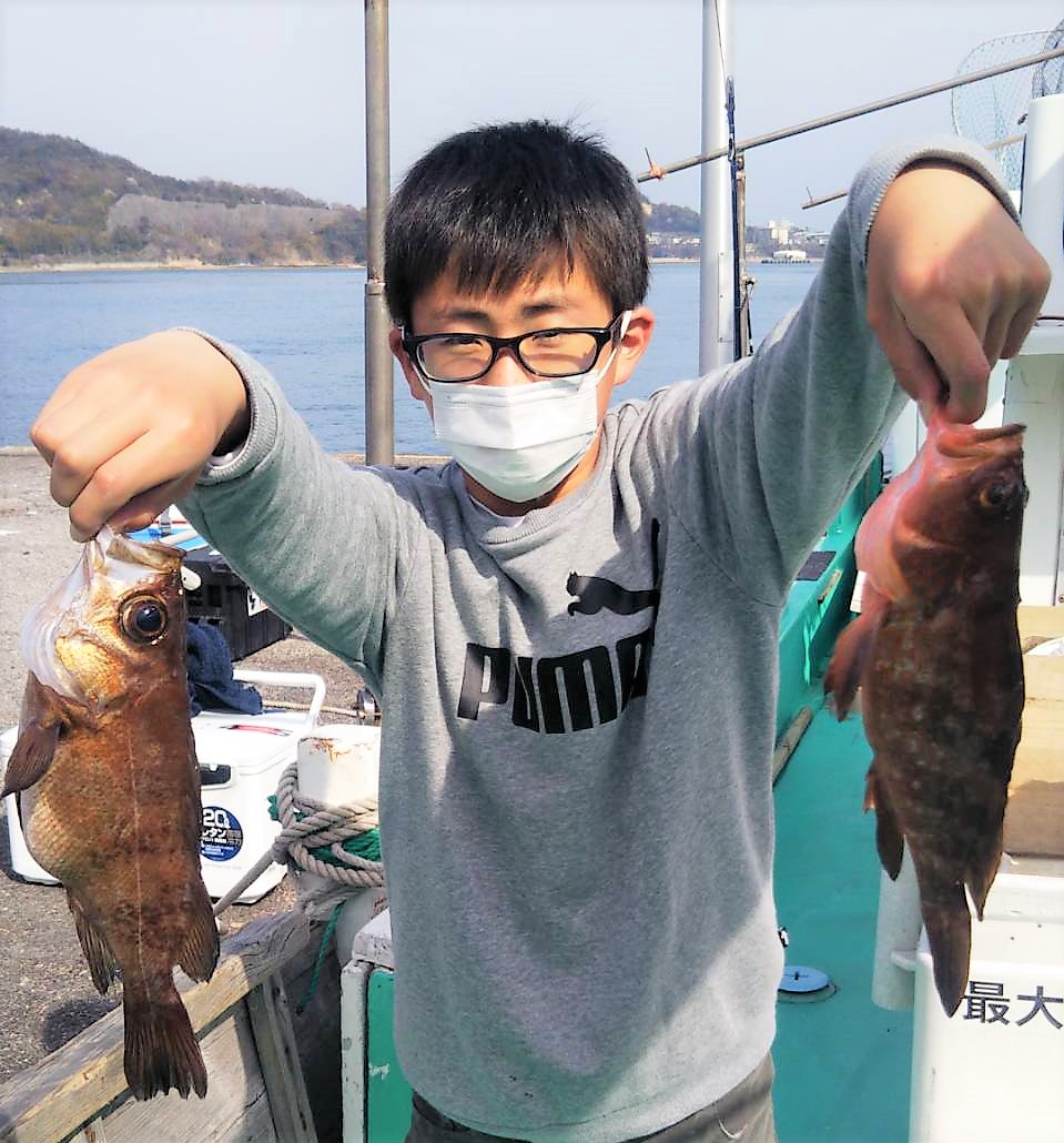 広島県呉市仁方発遊漁船七海です。 今日はメバル狙いしてきました。 今日はトクちゃん、s治さん、岩ちゃん達とでてきました。 朝一は良い感じでメバルが。 アジも30センチを超える良いサイズが上がったのですが 中盤戦からいまいち、ウロウロしてみたのですが最後までパッとしませんでした。 遊漁船七海では二人体制でやっていますのでしっかりサポートさせていただきます。 初めて遊漁船に乗られる方でもお気軽にご連絡ください。 釣った魚は下処理をしてお持ち帰りいただけます。 コロナ対策のためマスク着用ご協力お願いします。 釣果情報 2021/03/27 遊漁船 七海 タグ:釣果情報 , アコウ , メバル , アジ