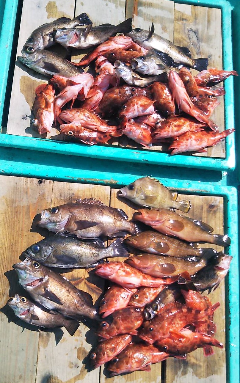 広島県呉市仁方発遊漁船七海です。 今日はメバル、アコウしてきました。 今日はm下さんと出船。 朝は少し走ってメバル狙い。 行ってすぐは釣れたのですが、反応いまいちだったので アコウ、カサゴ狙いに変更。 潮どまりから終わりまでずーっとアタリはありましたよ。 アコウはまだ少し小型でしたが段々食いが良くなってきてますね。 遊漁船七海では二人体制でやっていますのでしっかりサポートさせていただきます。 初めて遊漁船に乗られる方でもお気軽にご連絡ください。 釣った魚は下処理をしてお持ち帰りいただけます。 コロナ対策のためマスク着用ご協力お願いします。 釣果情報 2021/04/24 遊漁船 七海 タグ:釣果情報 , アコウ , メバル , カサゴ , セトダイ