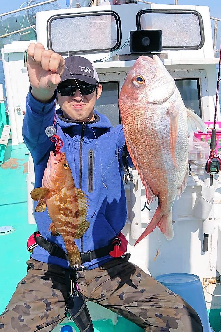 広島県呉市仁方発遊漁船七海です。 今日はタイラバ、アコラバしてきました。 今日は福君達とタイラバ、アコラバ調査便。 朝の最初の一流し目こそアタリが少なかったですが 潮の緩みからは良い感じにアコウが当たって来てくれましたよ。 潮が変わってからはタイ、こちらも入ったアジロはほとんど当たりありでした。 タイ、アコウともにこれから良くなりそうですね。 遊漁船七海では二人体制でやっていますのでしっかりサポートさせていただきます。 初めて遊漁船に乗られる方でもお気軽にご連絡ください。 釣った魚は下処理をしてお持ち帰りいただけます。 コロナ対策のためマスク着用ご協力お願いします。 釣果情報 2021/05/06 遊漁船 七海 タグ:釣果情報 , タイ , アコウ , カサゴ , タイラバ , アコラバ