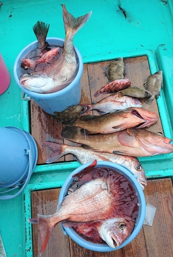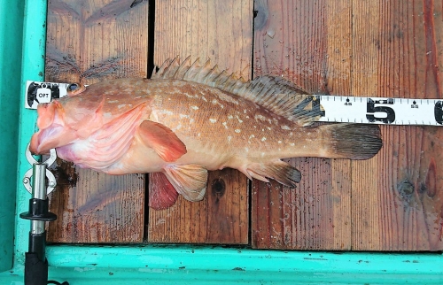 タイがポツポツ釣れる中に良いサイズのアコウが混じってくれました。