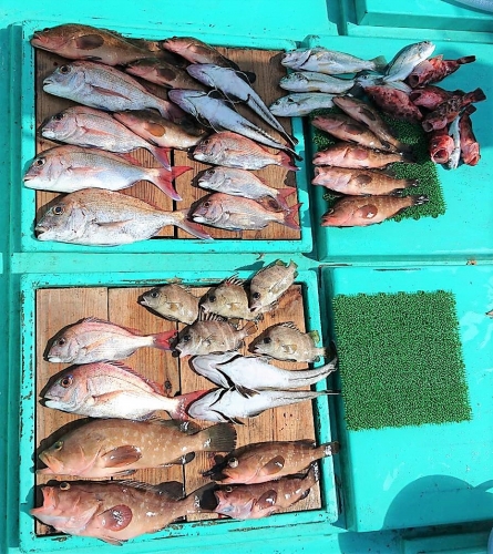 広島県呉市仁方発遊漁船七海です。 今日も一つテンヤしてきました。 今日は村さん達と隼華の藤村さんが来てくれました♪ 一流し目からポツポツ。 ちょっと釣れない時間がありましたが。 中盤から後半にかけては良い感じで当たりアリでした。 藤村さん流石ですね、最後までめっちゃ釣ってました。 遊漁船七海では二人体制でやっていますのでしっかりサポートいただきます 初めて遊漁船に乗られる方でもお気軽にご連絡ください。 釣った魚は下処理をしてお持ち帰りいただけます。 餌のエビはシーズン中はしっかり用意させていただきます コロナ対策のためマスク着用ご協力お願いします。 釣果情報 2021/07/19 遊漁船 七海 タグ:釣果情報 , タイ , アコウ , カサゴ , 一つテンヤ , セトダイ , グチ , コチ