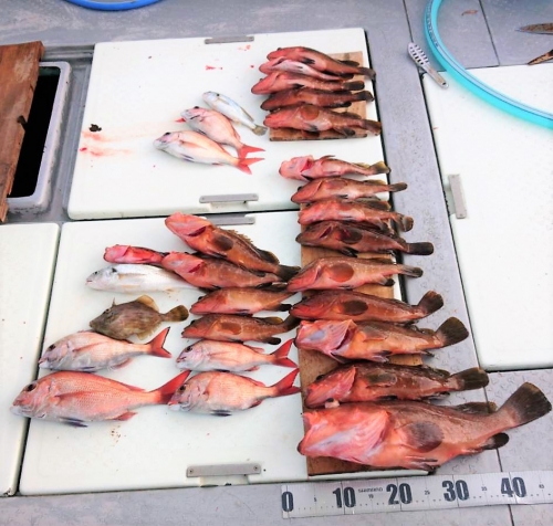 広島県呉市仁方発遊漁船七海です。 今日は一つテンヤしてきました。 今日は片さん、O本さん、hsmtさん達と出てきました。 朝から一つテンヤでアコウ狙い。 スタートからポツポツ。 中盤に良いサイズが出ましたね。 後半もポツポツ釣れて、終わったら結構釣れてました。 遊漁船七海では二人体制でやっていますのでしっかりサポートさせていただきます。 初めて遊漁船に乗られる方でもお気軽にご連絡ください。 釣った魚は下処理をしてお持ち帰りいただけます。 餌のエビはシーズン中はしっかり用意させていただきます コロナ対策のためマスク着用ご協力お願いします。 釣果情報 2021/12/05 遊漁船 七海