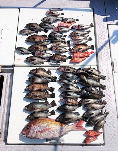 広島県呉市仁方発遊漁船七海です。 今日もメバルしてきました。 今日は片さん、hshrさん達と出てきました。 朝一、スタートは良いサイズのメバルが喰ってくれて良い感じ。 中盤では55センチと良いサイズのタイ。 後半にはまたメバルのプチラッシュがあって結構楽しめました。 遊漁船七海では二人体制でやっていますのでしっかりサポートさせていただきます。 初めて遊漁船に乗られる方でもお気軽にご連絡ください。 釣った魚は下処理をしてお持ち帰りいただけます。 コロナ対策のためマスク着用ご協力お願いします。 釣果情報 2022/04/03 遊漁船 七海 タグ:釣果情報 , タイ , メバル , カサゴ