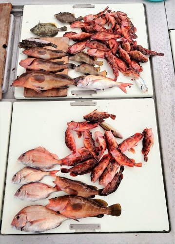 広島県呉市仁方発遊漁船七海です。 一つテンヤしてきました。 今日はOKさん、Nkwさん達と出てきました。 スタートは結構良い感じで行けたのですが 昨日と同じように中盤戦で結構苦戦。 後半ポツポツ釣れてやっとお土産くらいにでした。 遊漁船七海では二人体制でやっていますのでしっかりサポートさせていただきます。 初めて遊漁船に乗られる方でもお気軽にご連絡ください。 釣った魚は下処理をしてお持ち帰りいただけます。 餌のエビはシーズン中はしっかり用意させていただきます 釣果情報 2022/07/18 遊漁船 七海 タグ:釣果情報 , タイ , アコウ , カサゴ , 一つテンヤ , セトダイ , ギザミ , コチ , オコゼ