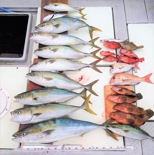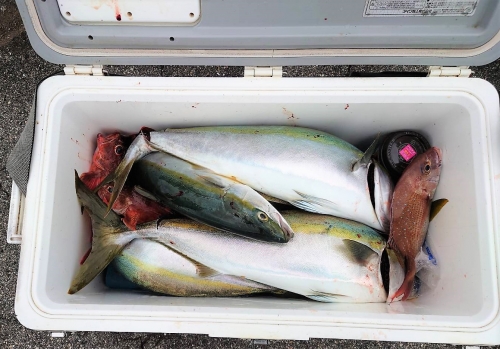 広島県呉市仁方発遊漁船七海です。 青物狙いしてきました。 今日は村さんO本さん、hsmtさん達と出てきました。 一流し目から、良い感じにアタリあり。 中盤の潮の緩みから流れ初めには 入れ食いタイムもあり かなり楽しめました。 遊漁船七海では二人体制でやっていますのでしっかりサポートさせていただきます 初めて遊漁船に乗られる方でもお気軽にご連絡ください。 釣った魚は下処理をしてお持ち帰りいただけます。 餌のエビはシーズン中はしっかり用意させていただきます 釣果情報 2022/10/09 遊漁船 七海 タグ:釣果情報 , タイ , アコウ , ヤズ , カサゴ , ハマチ , カワハギ , SLJ , ジギング , 青物サビキ , カマス