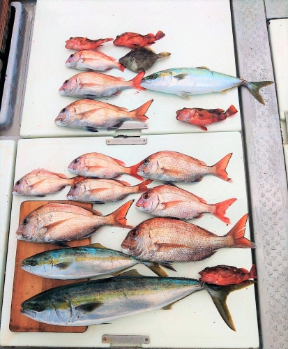 広島県呉市仁方発遊漁船七海です。 今日はタイ、青物狙いしてきました。 今日はMkさん、Nskwさん、なーさん達と出てきました。 前半戦はポツポツ当たって来たのですが 中盤から後半にかけては結構厳しかったです。 遊漁船七海では二人体制でやっていますのでしっかりサポートさせていただきます。 初めて遊漁船に乗られる方でもお気軽にご連絡ください。 釣った魚は下処理をしてお持ち帰りいただけます。 餌のエビはシーズン中はしっかり用意させていただきます 釣果情報 2023/01/03 遊漁船 七海 タグ:釣果情報 , タイ , ヤズ , カサゴ , ハマチ , カワハギ , タイサビキ