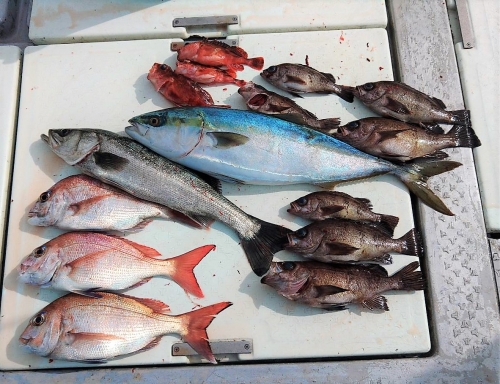 広島県呉市仁方発遊漁船七海です。 今日はメバル、タイ狙いしてきました。 今日はfrmtさん達と出てきました。 スタートはメバルから、反応はバッチリ。 良いサイズが上がってきてよしよしと思ったらそれっきり。 後半タイ狙いしてみましたがこちらも今一でした。 遊漁船七海では二人体制でやっていますのでしっかりサポートさせていただきます 初めて遊漁船に乗られる方でもお気軽にご連絡ください。 釣った魚は下処理をしてお持ち帰りいただけます。 釣果情報 2023/03/20 遊漁船 七海 タグ:釣果情報 , タイ , メバル , カサゴ , スズキ , ハマチ