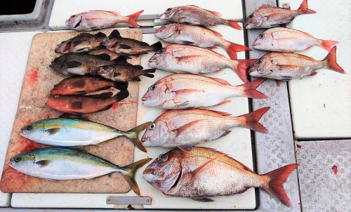 広島県呉市仁方発遊漁船七海です。 タイラバしてきました。 今日はsndさん達と出てきました。 久しぶりにタイラバでスタート。 ポツポツ当たりあり。 アコウに、タイが当たってきてくれる。 潮が変わってアタリが少ないのでウロウロ。 潮どまり前にちょっとメバル、こちらは顔が見れました。 後半もタイラバしてみましたが、少しシーズン早かったみたいです。 遊漁船七海では二人体制でやっていますのでしっかりサポートさせていただきます 初めて遊漁船に乗られる方でもお気軽にご連絡ください。 釣った魚は下処理をしてお持ち帰りいただけます。 釣果情報 2023/03/27 遊漁船 七海 タグ:釣果情報 , タイ , アコウ , ヤズ , メバル , タイラバ