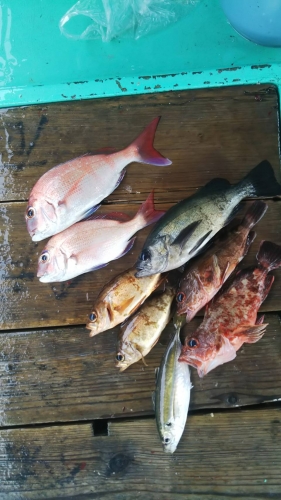広島県呉市仁方発遊漁船七海です。 今日はタイやってきました。 朝一鯛を狙っていたらいきなりのアコウ。 しかも結構いいサイズこのまま上手くいくかと思いましたが 失速してしまったので、少し魚種を変えて メバルとアジ狙いに、アジはアタリは少なかったですが メバルはポツポツですが当たってきてくれます。 そうしてたら潮がよくなりだしたのでタイに戻ってチャレンジ。 いい感じで当たってくれて最後はアジを追加で終わりました。 本日もありがとうございました。 釣果情報 2018/07/28 遊漁船 七海 タグ:釣果情報 , タイ , アコウ , メバル , カサゴ , 一つテンヤ , アジ