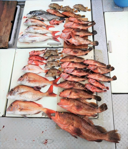 広島県呉市仁方発遊漁船七海です。 一つテンヤしてきました。 今日はO本さん、Nkwさん達と出てきました。 スタートはポツポツ当たってくれたけど 中盤戦はかなり苦戦、後半になってなんとか 当たりが出始めて、52センチの良いアコウも出て、プチラッシュありでなんとかなりました。 遊漁船七海では二人体制でやっていますのでしっかりサポートさせていただきます。 初めて遊漁船に乗られる方でもお気軽にご連絡ください。 釣った魚は下処理をしてお持ち帰りいただけます。 餌のエビはシーズン中はしっかり用意させていただきます 釣果情報 2023/08/14 遊漁船 七海 タグ:釣果情報 , タイ , アコウ , カサゴ , 一つテンヤ , セトダイ