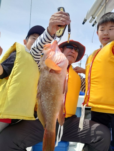 広島県呉市仁方発遊漁船七海です。 今日はタイラバしてきました。 今日はsbtさん達と出てきました。 スタートから良いサイズのタイ、 しかし後が続かずウロウロ、途中こちらでは見たことない柄の大きなカサゴも 中盤から後半にかけてまあまあ良いところを見つけて、50センチを頭に大型アコウが連続ヒットで ボチボチ楽しめました。 遊漁船七海では二人体制でやっていますのでしっかりサポートさせていただきます。 初めて遊漁船に乗られる方でもお気軽にご連絡ください。 釣った魚は下処理をしてお持ち帰りいただけます。 釣果情報 2024/04/28 遊漁船 七海 タグ:釣果情報 , タイ , アコウ , 一つテンヤ , コチ , タイラバ