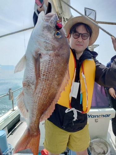 広島県呉市仁方発遊漁船七海です。 タイラバしてきました。 今日はNgsさん達と出てきました。 朝一は昨日釣れたところへ、しかし 行ってみたらスナメリさんの群れ😨 ベイトの反応は残っていてのでやってみましたがタイは当たらず。 その後はウロウロしてポツポツ拾い釣り。 後半に60センチを頭にプチ時合アリでそこそこ楽しめました。 遊漁船七海では二人体制でやっていますのでしっかりサポートさせていただきます 初めて遊漁船に乗られる方でもお気軽にご連絡ください。 釣った魚は下処理をしてお持ち帰りいただけます 釣果情報 2025/04/30 遊漁船 七海 タグ:釣果情報 , タイ , アコウ , カサゴ , タイラバ