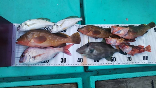 そんなんかタロウさんはキッチリ鯛仕留めてくれます、美味しそうなウマヅラハギも