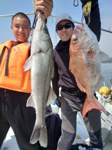 広島県呉市仁方発遊漁船七海です。 タイラバしてきました 今日はNgskさん達と出てきました。 スタートはイマイチ 当たるけど掛からない、 ウロウロして昨日釣れたところに 当たるけどイマイチだなと思ってたら 急に時合アリで、タイ、ハマチ、スズキと良い感じで釣れてくれて 何とかでした。 遊漁船七海では二人体制でやっていますのでしっかりサポートさせていただきます。 初めて遊漁船に乗られる方お子様連れの方でもお気軽にご連絡ください。 釣った魚は下処理をしてお持ち帰りいただけます 釣果情報 2026/04/06 遊漁船 七海 タグ:釣果情報 , タイ , アコウ , スズキ , ハマチ , タイラバ